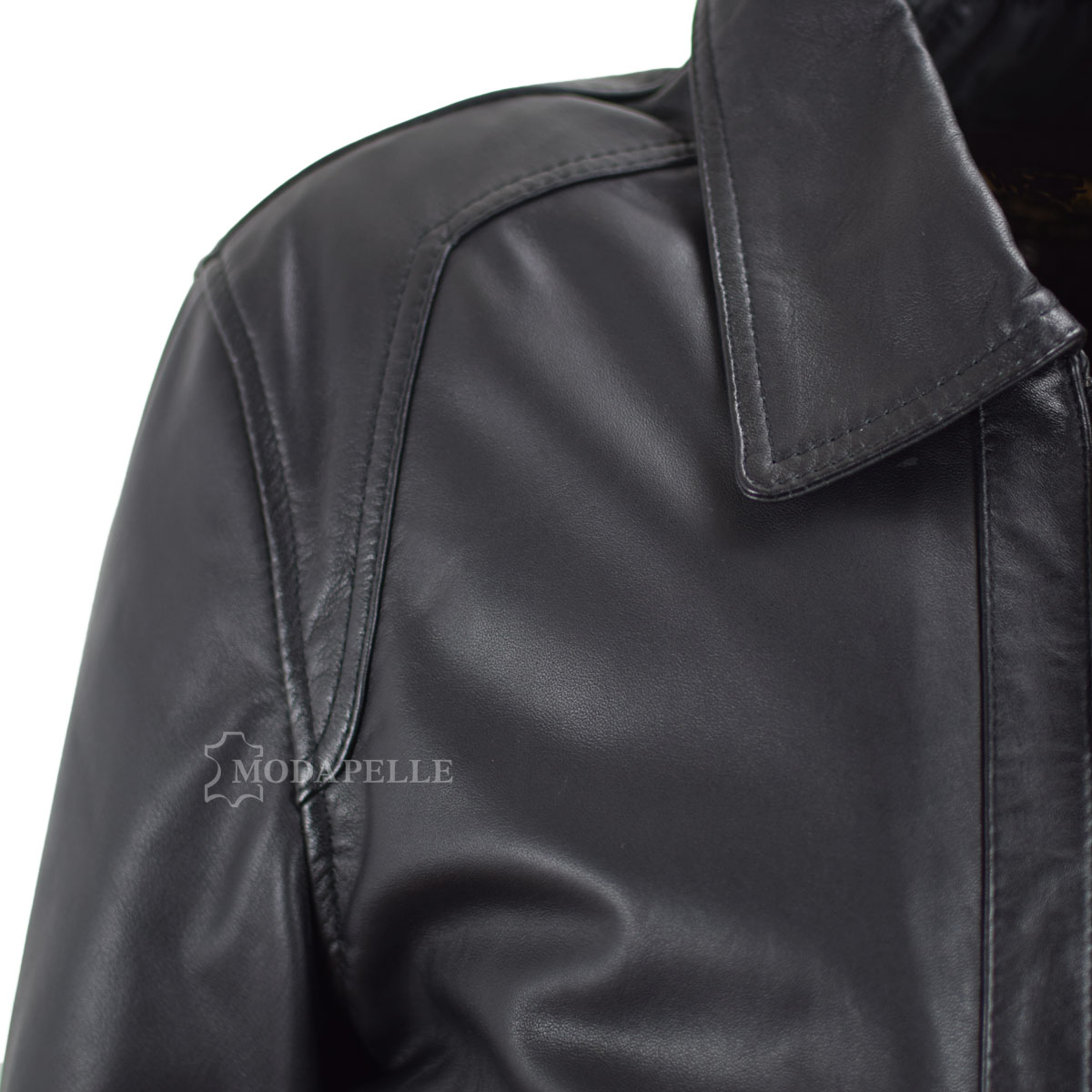 Herren-Lederjacke „Classic Black“ (klassisch schwarz). Aus erstklassigem weichem Nappaleder von beeindruckender Qualität! Mit zwei Außentaschen, die mit Reißverschluss verschlossen werden! Im Inneren befinden sich zwei Taschen, eine auf jeder Seite.