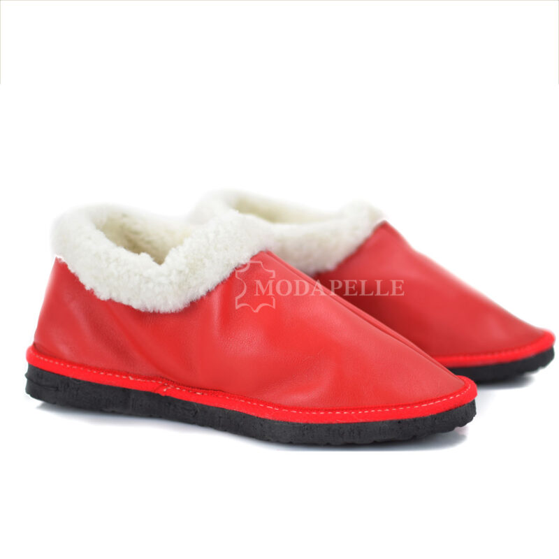 Extrem warm, bequem, leicht und allergikerfreundlich – Geschlossene Fellpantoffeln aus Kastoria (Pantoffel) in Rot.