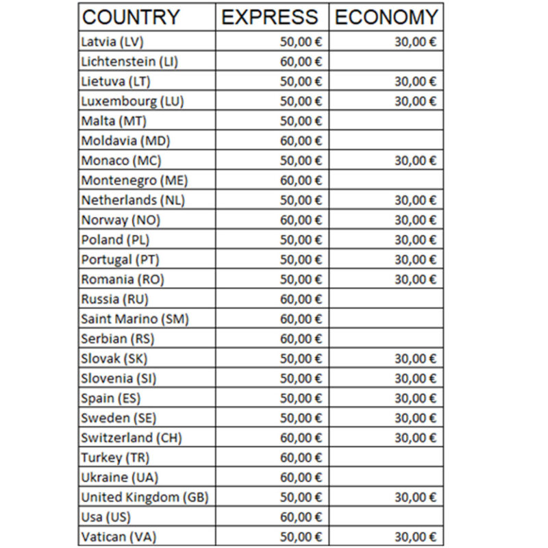 - Der Express-Service hat eine Lieferzeit von 3 bis 5 Tagen, während der Economy-Service 7 bis 10 Tage dauert. Bitte beachten Sie, dass der Economy-Service nicht für alle Länder verfügbar ist.