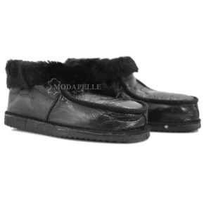 Γούνινες παντόφλες Καστοριάς κλειστές (πασούμια) mp411 μαύρο – κορδόνι