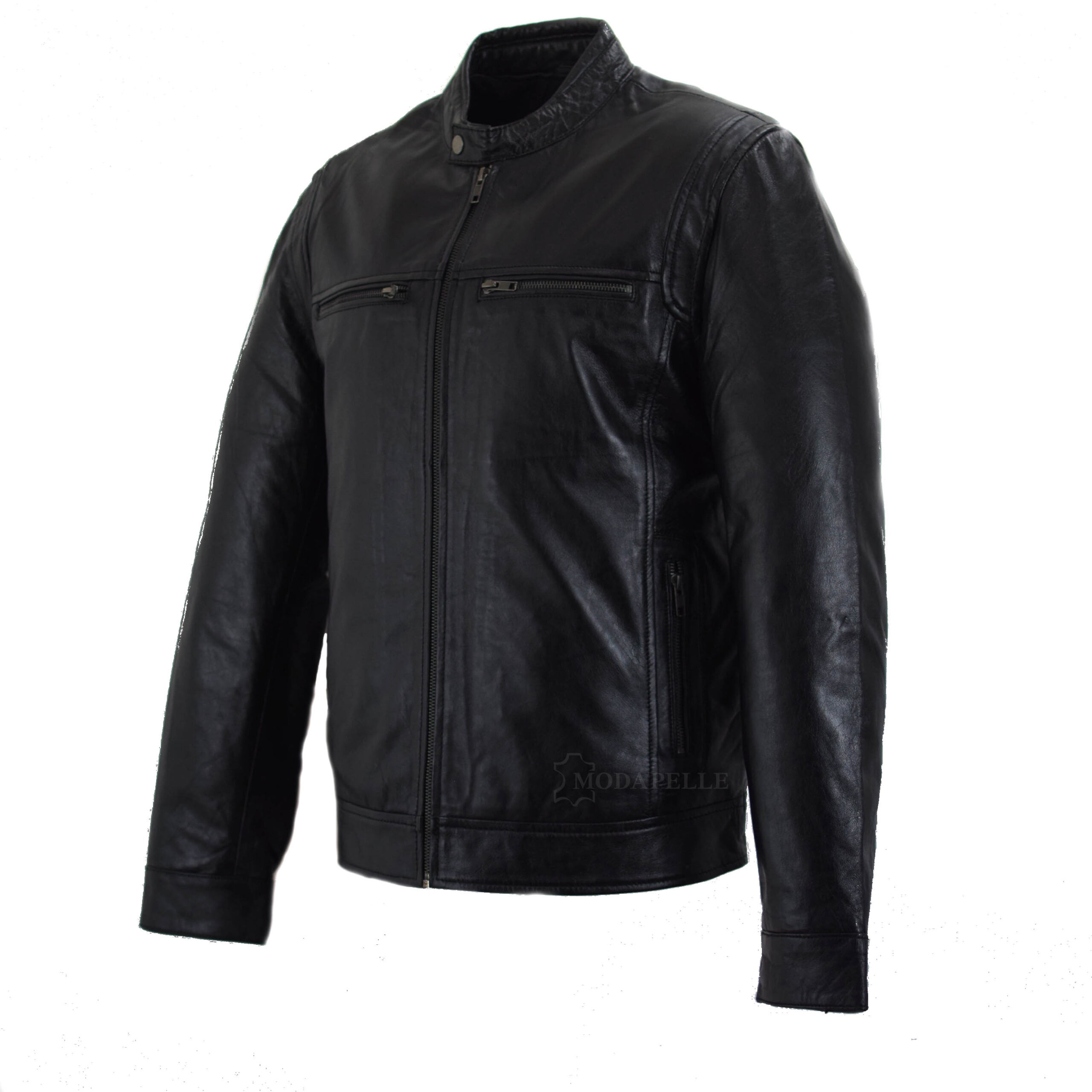 Δερμάτινο μπουφάν, από καταπληκτικής ποιότητας δέρμα nappa (sheep) σε χρώμα μαύρο! Με τέσσερις εξωτερικές τσέπες οι οποίες ασφαλίζουν με φερμουάρ και δύο εσωτερικές. Οι μανσέτες επίσης μπορούν να κουμπωθούν για καλύτερη εφαρμογή.